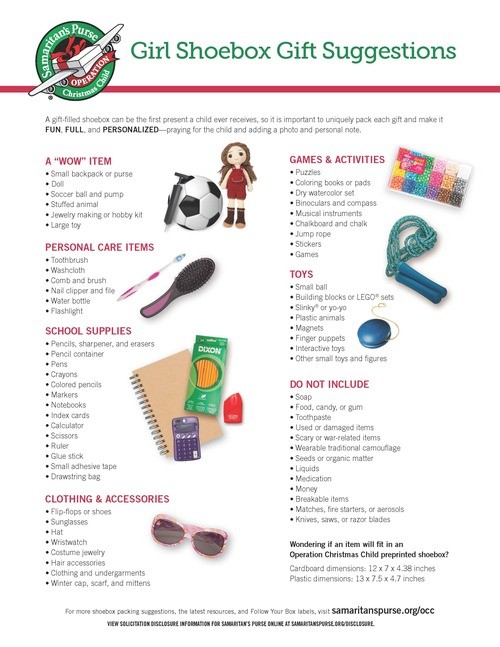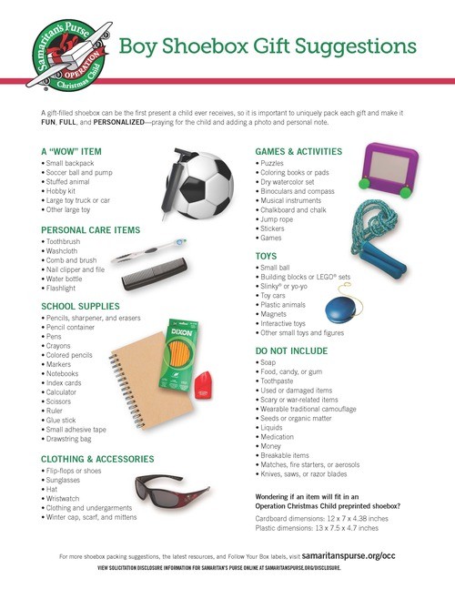 If you would like to pack a box for a child, see the gift suggestions for girls/boys below, or download HERE.