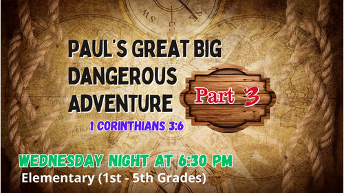 - This Wednesday, elementary kids will continue their series, “Paul’s Great Big Dangerous Adventure (Part 3),” with a fun night learning more about the apostle Paul, a disciple of Jesus who went on to write many of our books in the New Testament!