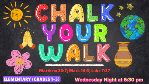 Elementary will be learning about how we can fill the Earth with our praise to God as we “chalk the walk” in front of the Children’s entrance.